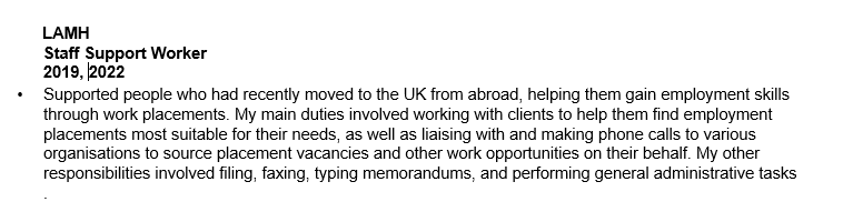 Or, if you worked for an organisation twice, both for short periods of time, once in June 2019, and once in 2022, instead of writing the month and year, simply list both dates as years, like so