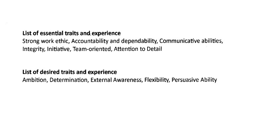 Whether a scorecard is utilised or not, the interview will still be put together in exactly the same way. First, an interviewing framework will need to be comprised. As was shown above, this starts with a list of traits and qualities the employer feels it’s necessary for their ideal candidate to have. These will normally be broken down into essential and desired categories. Essential skills and experience are always essential for performing the role, whereas desirable skills and experience can normally be learned on the job. If well written, some, or all of these will be listed in the job description, so pay close attention to it. The interviewer will be instructed to look for evidence of these essential and desired traits and experience, like so