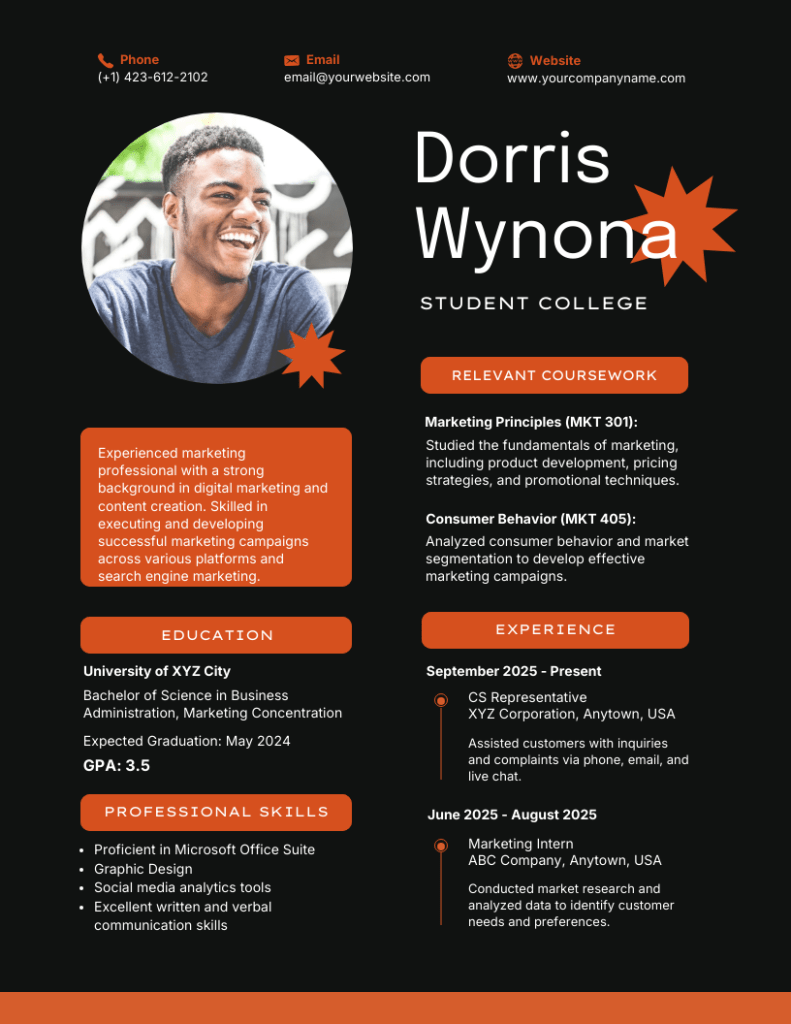 For starters, compiling your document as a resume rather than a C.V is probably a smarter option because ,in most cases, you will have less to add to it. Nowadays there are plenty of resume designs to choose from, so if you’re short on experience and having a challenging time coming up with relevant information to include, finding a layout that has lots of large icons and a big design element to it will not only help fill up more space, but will also help to make it that much more visually appealing to any prospective employers who read it!